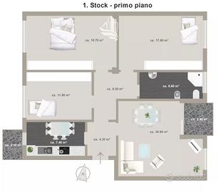 In vendita proponiamo un appartamento quadrilocale al primo piano di un edificio con ascensore, situato in via San Vigilio a Bolzano. L'ascensore può essere utilizzato contribuendo alla quota prevista.