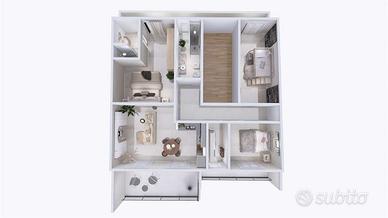 L'immobile, dotato di doppia esposizione e ristrutturato a nuovo, presenta una luminosa zona giorno con angolo cottura a vista e con sfogo tramite porta finestra . Dal disimpegno, raggiungiamo le tre camere da letto, di cui una matrimoniale con bagno padronale, la zona lavanderia ed il bagno principale dotato di ampio piatto doccia e finestrato.