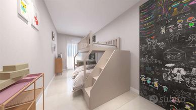 L'appartamento presenta una luminosa zona giorno con angolo cottura a vista e con sfogo tramite porta finestra sulla sulla profonda terrazza a livello. Dal disimpegno, raggiungiamo le tre camere da letto, due matrimoniali di cui una con bagno padronale, un ulteriore ambiente adibito a lavanderia ed il bagno principale dotato di ampio piatto doccia.