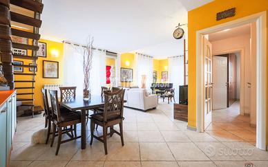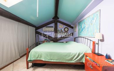 INTERNO: Appartamento composto al piano inferiore da ampio salone doppio di 40 metri, cucina abitabile, ripostiglio, una camera da letto matrimoniale e un bagno. Al piano superiore, ulteriore camera e bagno oltre ampio sottotetto (possibilità di renderlo terrazzo ad asola di 16 metri).