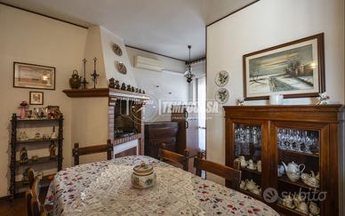 L'ingresso accogliente conduce alla zona giorno, composta da un luminoso soggiorno, una sala da pranzo con camino e aria condizionata e una cucina separata. La zona notte, ben organizzata, offre due camere matrimoniali di generose dimensioni, una camera doppia e due bagni finestrati, garantendo comfort e funzionalità per tutta la famiglia. L'appartamento è impreziosito dalla presenza di due balconi, ideali per godere di momenti di relax all'aria aperta. Completano la proprietà un garage doppio di 33 mq, una cantina di circa 3 mq al piano seminterrato e un locale finestrato al piano terra di 16 mq, perfetto da adibire a studio o spazio multiuso, elementi che assicurano praticità e ulteriori ambienti.