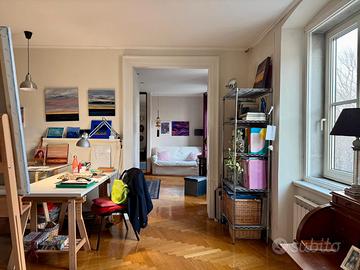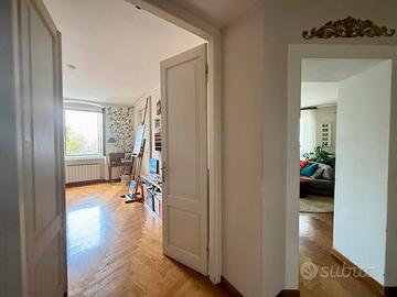 All'interno di un elegante palazzo signorile, proponiamo in vendita uno splendido appartamento al quarto e ultimo piano, servito da ascensore. Si distingue per la generosa metratura e l'ottima distribuzione degli spazi in un quadrilocale luminoso e raffinato: accogliente ingresso, ampio soggiorno con tre finestre per momenti conviviali, tre camere matrimoniali, uno studio ideale per smart working o hobby, cucina separata funzionale. I doppi servizi finestrati offrono praticità - il principale con vasca idromassaggio per il relax, il secondo con doccia - completati da un ripostiglio/lavanderia. Include una pratica ed ampia soffitta al quinto piano con lucernaio. Rifinito con materiali di qualità, vanta una splendida vista sul parco che regala luminosità e affaccio privilegiato sul verde. Ideale per ampi spazi. Inoltre, è possibile riservare nelle vicinanze in locazione un comodo box auto di circa 16 mq , per garantire maggiore praticità.