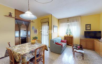 L'alloggio sito al primo piano è composto da ingresso sul disimpegno dal quale si articolano poi tutti gli ambienti: ampio salone e cucina a vista con affaccio sul balcone, tre grandi camere da letto, tutte e tre finestrate e soleggiate per tutto il giorno, un bagno finestrato, un locale lavanderia e un comodo ripostiglio.