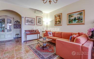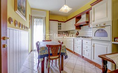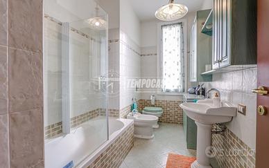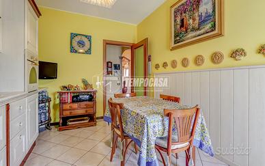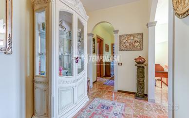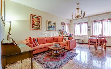 In zona centrale, a 300 metri dalla stazione ferroviaria e da tutti i servizi di natura primaria, la Tempocasa propone in vendita uno splendido QUADRILOCALE panoramico, caratterizzato da una luminosità eccellente, da una soleggiatura circolare per tutto l'arco della giornata e da spazi molto ampi ottimamente distribuiti. L'immobile è situato al secondo piano di un condominio signorile, edificato negli anni '70, dotato di ascensore che arriva fino al cortile interno dove troviamo l'ampio box di proprietà, immobile che negli anni si è mantenuto in perfette condizioni interne ed esterne. L'appartamento è stato costantemente curato anche nei dettagli ed è dotato di impianti ed allacciamenti per un confort di livello. L'appartamento si distingue per una grande terrazza, introvabile in zona in un contesto condominiale, ideale per momenti di relax, pranzi all'aperto o per chi desidera uno spazio esterno vivibile tutto l'anno. Lo stile dell'appartamento è classico e raffinato, ma allo stesso tempo in ottimo stato di manutenzione grazie a: infissi in pvc/5 camere, impianto di condizionamento con pompa di calore e riscaldamento a pavimento. L'assenza di termosifoni permette uno sfruttamento degli spazi, già generosi come metratura. In particolare, l'immobile si compone come segue: -- Ingresso spazioso che introduce alla zona giorno e alla zona studio/notte dell'appartamento -- Cucina abitabile e spaziosa con terrazzino di supporto, molto funzionale -- Soggiorno con doppio affaccio e uscita diretta sul terrazzo, che gode di una doppia esposizione sulle vie adiacenti oltre ad offrire una vista panoramica - Bagno di servizio finestrato con lavatrice -- Disimpegno che conduce alla zona notte, in cui è stato realizzato un comodo e spazioso armadio a muro, interamente su misura -- Camera matrimoniale di generose dimensioni, luminosa e a - Classe: E - IPE: 98.78 kWh/mq anno