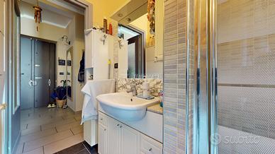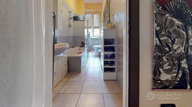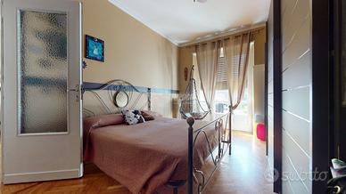 Comodo Ingresso su luminoso Soggiorno di ampia metratura, con Cucina a vista, dotato di Finestra e Porta-Finestra per accedere al primo Balcone, spaziosa Camera da Letto illuminata dalla presenza di due Finestre, una seconda Camera da Letto da cui si accede al secondo Balcone, un'ultima Camera anch'essa con accesso al terzo Balcone e due lunghi Bagni finestrati, uno dotato di Box Doccia e l'altro di una Vasca.