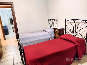 quadrilocale ristrutturato ben ammobiliato con stanza letto grande , secona comoda stanza per due letti , cucina abitabile, bagno, soggiorno con tavolo da pranza, stanza per studio o altri usi ( non è riporta la foto ) , corridoio , riscaldamento a termosifoni, climatizzatore stanza da lettto grande, primo piano comodo, posti macchina nel cortile . affitto da concordare secondo periodo richiesto. spese condominiali solo luce e pulizia scala , lavanderia esterna sul balcono