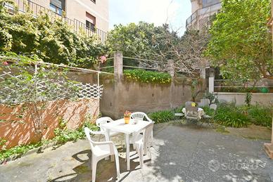 In una delle zone più apprezzate di Cagliari, precisamente in via Solmi nei pressi di Monte Urpinu, proponiamo in vendita un interessante appartamento situato al piano rialzato di uno stabile anni '70 molto ben curato e in ottime condizioni generali. L'immobile si apre su un ingresso con disimpegno che conduce alla luminosa e ampia zona giorno, caratterizzata da un soggiorno accogliente con porta finestra e accesso diretto a un esclusivo cortile terrazzato, uno spazio esterno unico nel suo genere per la zona che rappresenta un vero valore aggiunto per momenti di relax o convivialità. Dal disimpegno si accede alla cucina abitabile, comoda e funzionale, e alla zona notte composta da tre spaziose camere da letto, tutte di generose dimensioni matrimoniali, oltre ai due bagni (principale e di servizio). L'appartamento si presenta in buone condizioni manutentive, tipiche dell'epoca ma ben conservate, ed è immediatamente disponibile in quanto attualmente non abitato. La soluzione è dotata di riscaldamento centralizzato e lo stabile garantisce la massima accessibilità grazie alla rampa per l'accesso ai disabili, rendendola una proposta ideale per famiglie o per chi cerca ampi spazi in una posizione strategica, priva di barriere architettoniche e ben servita.