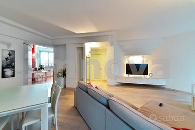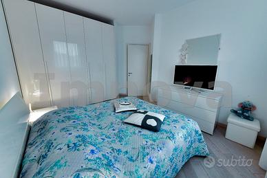 L' appartamento si trova al primo piano ed è disposto su due livelli: ingresso sul soggiorno con ampio balcone, cucina abitabile, camera da letto e bagno con doccia e sanitari sospesi. Al piano superiore abitabile troviamo due camere, il grande bagno e il terrazzo.