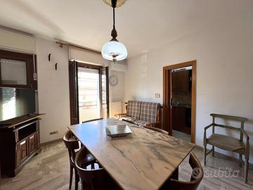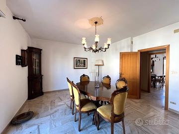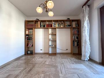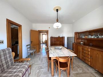 All'interno, l'appartamento accoglie con una bella zona giorno luminosa, composta da un'ampia sala che offre la possibilità di creare un ambiente unico con la cucina, attualmente separata e abitabile. La zona notte comprende tre camere da letto, di cui una singola e due matrimoniali, e un bagno.