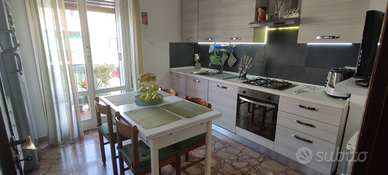cucina abitabile con balcone ristrutturata di recente e ammobiliata su entrambe le pareti;
