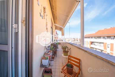 Grazie alla posizione al piano alto e alle ampie vetrate, il soggiorno risulta estremamente luminoso e arioso, con accesso diretto a un balcone di generose dimensioni, ideale per pranzi all'aperto o semplicemente per rilassarsi con una vista aperta sul quartiere.