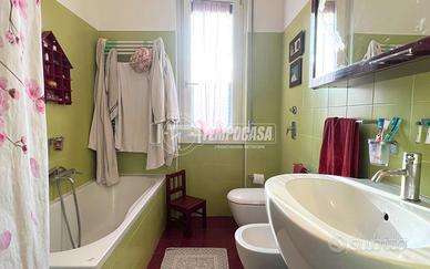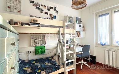 Camera matrimoniale con secondo balcone privato, camera singola, bagno finestrato e completo sia di vasca che di doccia e un funzionale bagno di servizio utilizzato come lavanderia.