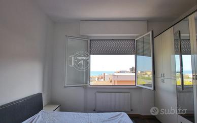 - L'ingresso si apre su un ambiente ben distribuito, con un ampio soggiorno luminoso che affaccia su un comodo balcone, ideale per godere di momenti all'aperto. La cucina è separata e dispone di un balconcino con vista mare, perfetto per una pausa rilassante.