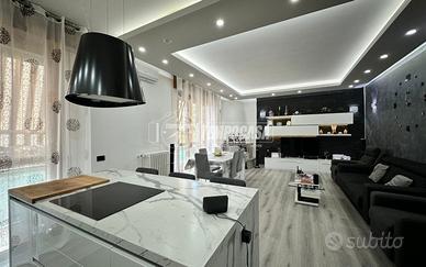 L'appartamento si apre su un luminoso e ampio living con camino, ideale per creare un'atmosfera accogliente nelle serate più fredde. La cucina a vista è moderna e funzionale, perfetta per chi ama cucinare e socializzare, dal soggiorno si accede al balcone, un piacevole sfogo esterno per momenti di relax.