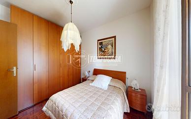 In zona centrale e tranquilla, a pochi passi da tutti i principali servizi, proponiamo in vendita ampio trilocale con doppi servizi, terrazzi e box doppio. L'immobile è inserito in un contesto ben curato composto da sole 4 famiglie. L'abitazione, edificata negli anni '90, ha beneficiato nel tempo di diversi interventi di ristrutturazione, tra cui l'installazione di persiane blindate, zanzariere su tutti gli infissi, la pavimentazione della zona giorno in gres porcellanato e il rifacimento dell'impianto idraulico. Gli infissi sono in legno con doppio vetro, in ottime condizioni. L'appartamento, di circa 90 mq, è posto al piano rialzato ed è così composto: ingresso su ampio e luminoso soggiorno con accesso al terrazzo, cucina abitabile con uscita sul terrazzo comunicante, disimpegno, camera matrimoniale con accesso al terrazzo, seconda camera doppia e doppi servizi, di cui uno di servizio e uno padronale. Nella zona notte è presente parquet. Completano la proprietà un ampio box doppio in larghezza di circa 38 mq, ideale per due auto, dotato anche di spazio per scaffalature e di un pratico angolo lavanderia; il corsello dei box è chiuso da cancello automatizzato. Sono inoltre presenti numerosi posti auto nelle immediate vicinanze. Soluzione ideale per famiglie alla ricerca di spazi comodi in contesto tranquillo e ben servito. PER ULTERIORI INFORMAZIONI O PER FISSARE UNA VISITA, NON ESITATE A CONTATTARCI !!!