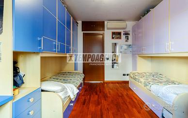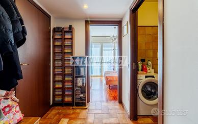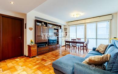 Nel servitissimo quartiere di Santa Giulia proponiamo in vendita un ampio trilocale con doppi servizi situato al secondo piano con ascensore, all'interno di una palazzina moderna del 2008. L'immobile, sempre appartenuto a un'unica proprietà, si distingue per una distribuzione degli spazi razionale e funzionale. Completano la soluzione una cantina e un box quasi doppio. L'ingresso si apre direttamente sul soggiorno, dove è presente un pratico ripostiglio utilizzabile come cappelliera o scarpiera. Dal soggiorno si accede al primo terrazzo con affaccio su via del Futurismo, mentre la cucina abitabile dispone di un secondo balcone, ideale come balcone di servizio per pattumiera e necessità quotidiane. Il disimpegno notte conduce a una zona notte ben separata dalla zona giorno, garantendo privacy e comfort. La zona notte comprende una camera singola molto ampia con affaccio su via del Futurismo, un bagno cieco di generose dimensioni con box doccia in cristallo e rivestimenti in mosaico, e la camera matrimoniale padronale dotata di bagno finestrato con vasca. La camera padronale rappresenta il vero ambiente di confort della casa grazie all'accesso diretto a un terzo terrazzo affacciato sulla tranquilla via parallela e sui palazzi del quartiere 2000 di via San Mirocle. L'appartamento richiede alcuni lavori di ammodernamento, ma è già dotato di infissi in PVC con doppio vetro, zanzariere, tapparelle, aria condizionata e controsoffittature con illuminazione a LED che valorizzano gli ambienti. La luminosità, la doppia esposizione, la presenza di 3 spazi esterni e la comodità di un contesto residenziale moderno, ben servito e in forte sviluppo rendono questa proposta particolarmente interessante. - Classe: D - IPE: 175.00 kWh/mq anno