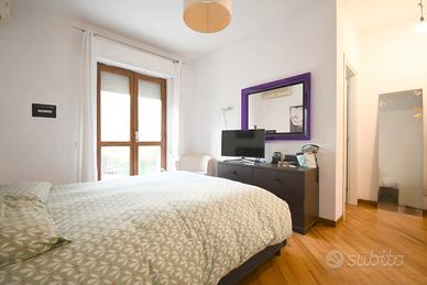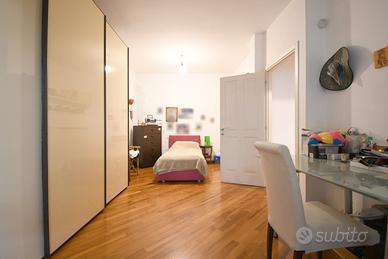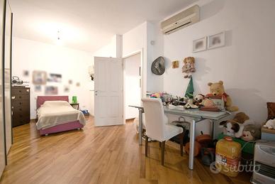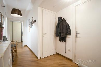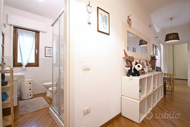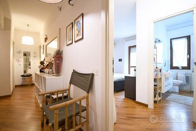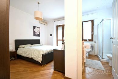 La zona notte comprende invece una camera padronale con bagno privato e una camera doppia che offre spazio e comodità, perfetta per ospiti, studio o famiglia. Il bagno principale completa la zona notte con stile e funzionalità.