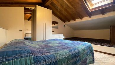 Al piano mansardato troviamo la seconda camera matrimoniale, ampia e ariosa, con spazio sufficiente per aggiungere un terzo letto o creare un'area relax.