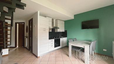 L'abitazione è disposta su due livelli e offre spazi ben distribuiti e curati. Al primo piano si accede a un'accogliente zona giorno con parete cottura, luminosa e funzionale, affacciata su una terrazza abitabile dove potrai gustare colazioni, pranzi e cene all'aperto. Sullo stesso piano si trovano la camera matrimoniale e il bagno.
