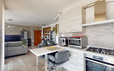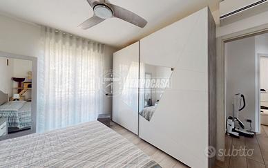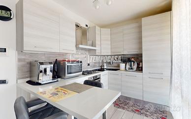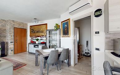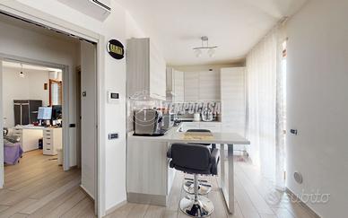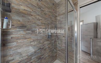 L'appartamento si apre su un accogliente soggiorno con cucina a vista, un ambiente luminoso e funzionale, ideale per la vita quotidiana e per ricevere ospiti. La zona notte è composta da due camere da letto di buone dimensioni, ben disposte e facilmente arredabili. Sono presenti due bagni, entrambi con box doccia, moderni e comodi, pensati per garantire praticità alle famiglie o a chi desidera un bagno esclusivo per ogni stanza.