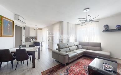 Le finiture interne sono moderne e accoglienti: la pavimentazione è in parquet laminato in tutti gli ambienti principali, conferendo calore e uniformità agli spazi; i serramenti sono in legno con vetro doppio, che assicurano un buon isolamento termico e acustico. L'appartamento è dotato inoltre di una cantina di 7 mq, ideale come spazio accessorio per riporre oggetti, biciclette o materiali stagionali.