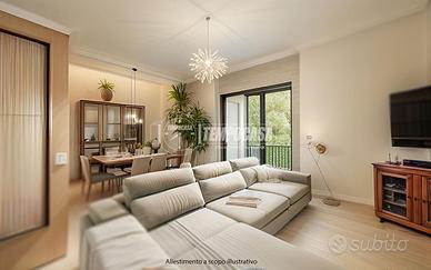 Zona giorno luminosa con ampio soggiorno, con accesso al balcone di proprietà, spaziosa cucina abitabile, Ampia Camera matrimoniale, anch'essa con accesso al balcone con una piacevole vista sul verde circostante, Seconda camera matrimoniale ideale per qualsiasi esigenza e Doppi servizi, perfetti per garantire maggiore privacy e funzionalità alla famiglia.