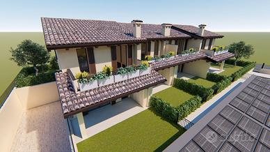 RC IMMOBILIARE - DESENZANO Vendiamo ultimo appartamento disponibile in residence di 5 unità con piscina e verde comune, con previsione di consegna per fine estate L'appartamento si trova al primo ed ultimo piano (possibilità di creare soppalco) ed è libero su 3 lati Composto da soggiorno con angolo cottura, 2 camere matrimoniali di cui 1 con bagno privato, ampio bagno finestrato con doccia, loggia coperta e balconi. Garage privato per 1 auto