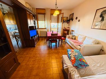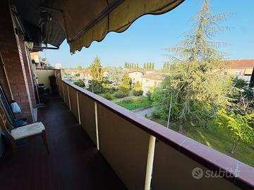 Cento (FE) - Via Israeliti 9 In contesto tranquillo e ben servito, proponiamo in vendita luminoso appartamento al terzo piano, caratterizzato da spazi generosi e ottima distribuzione interna. L'ingresso, dotato di porta blindata, conduce direttamente all'ampia zona living composta da soggiorno e cucina abitabile in ambiente comunicante, con esposizione a est che garantisce ottima luminosità. Dalla zona giorno si accede a un balcone di circa 10 mq che si sviluppa lungo tutta la lunghezza dell'immobile. La zona notte è ben separata e organizzata: lungo il corridoio troviamo un comodo armadio a muro di grandi dimensioni. Sono presenti due camere matrimoniali, entrambe con pavimenti in parquet, di cui una con accesso diretto al balcone. Completano la zona notte un bagno finestrato, ristrutturato circa 10 anni fa, dotato di ampia doccia e termoarredo, e un pratico ripostiglio/locale tecnico. L'immobile dispone inoltre di: garage di circa 12 mq due cantine (una al piano terra e una nel sottotetto) Il condominio offre spazi comuni funzionali, tra cui due depositi biciclette e uno stenditoio sul tetto con barbecue in muratura. Soluzione ideale sia come abitazione principale che come investimento. Attualmente locato - disponibile da ottobre 2026.