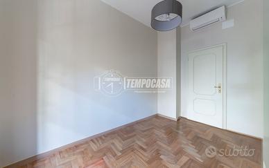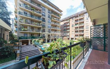 Nella ricercata via Sismondi proponiamo in locazione ampio trilocale di 130 mq, sito al piano rialzato, in contesto signorile anni '60, con servizio di portineria intera giornata.
