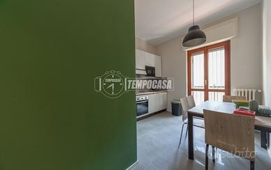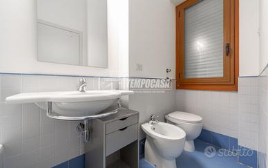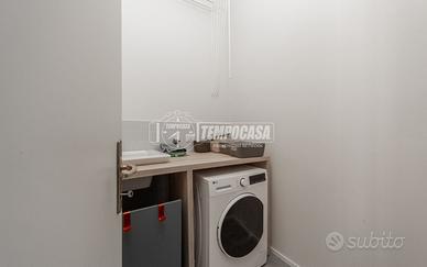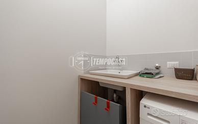 La soluzione, molto luminosa grazie alla tripla esposizione, è così composta: ingresso su disimpegno, cucina abitabile, lavanderia, camera singola con bagno finestrato con vasca en suite, camera matrimoniale, bagno finestrato con box doccia e ampio soggiorno.