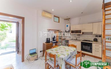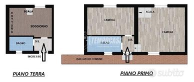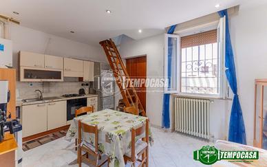 L'immobile è composto da: ingresso, ampio soggiorno con cucina a vista, bagno finestrato con box doccia, tramite una scala interna si accede al piano superiore dove troviamo la zona notte con camera matrimoniale, camera, bagno finestrato con vasca e uscita sul ballatoio comune.