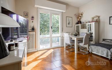 Nel cuore del quartiere Santo Stefano, in una posizione privilegiata a due passi dal centro ma al riparo dal traffico e dalla ZTL, proponiamo un appartamento unico nel suo genere. L'immobile si trova in un viale appartato e silenzioso, all'interno di una palazzina degli anni '60 già oggetto di diversi interventi di manutenzione: sono state sostituite le grondaie, installato un nuovo portone d'ingresso e ritinteggiato il vano scale, garantendo un contesto curato e accogliente. L'appartamento si trova all'ultimo piano, senza ascensore, e si distingue per gli spazi generosi e la luminosità che lo caratterizzano. L'ingresso, ampio e arioso, si apre su una sala di grandi dimensioni con accesso diretto al balcone, perfetta per accogliere momenti di convivialità. La cucina abitabile è separata, funzionale e ben disposta, mentre il disimpegno notte ospita un armadio a muro su misura, ideale per sfruttare ogni angolo. Le due camere da letto, entrambe sovradimensionate, offrono comfort e versatilità, permettendo anche la realizzazione di un secondo servizio, incrementando ulteriormente la comodità della casa, oltre al bagno principale ampio e finestrato. Gli interni sono stati arricchiti con interventi di qualità: riscaldamento autonomo con nuova caldaia a condensazione, infissi in alluminio con doppio vetro, porte bianche eleganti recentemente sostituite, aria condizionata con pompa di calore per garantire benessere in ogni stagione. La vista aperta e gradevole contribuisce a rendere l'atmosfera ancora più piacevole. La zona è tra le più richieste e servite: la scuola si trova nello stesso viale, il supermercato Esselunga è raggiungibile in pochi minuti a piedi, così come il centro città, le poste e tutti i principali servizi, che restano comodamente a portata di passeggiata. A completare la proprietà vi sono un box auto e un ampio solai
