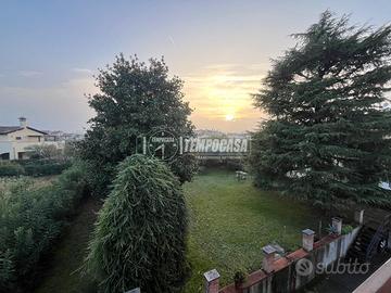 Completano la proprietà due cantine private al piano seminterrato, un pratico spazio taverna utilizzabile anche come box auto doppio, due posti auto e un ampio giardino comune di circa 1000 mq.
