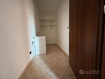 L'appartamento al piano primo, con ingresso- salotto, soggiorno-pranzo e angolo cottura in open space, disimpegno, ampio ripostiglio con zona lavanderia, bagno con box doccia, camera da letto matrimoniale e camere da letto singola.