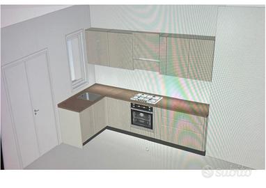 Viene dato con angolo cottura arredato, con forno elettrico, fornelli gas e lavastoviglie