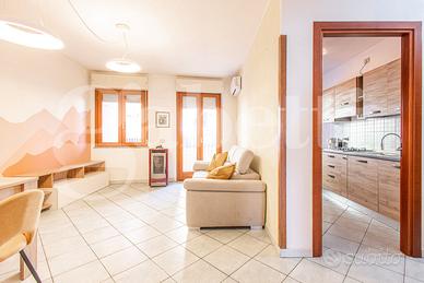 Tramite portoncino blindato accediamo alla zona giorno, suddivisa in due ambienti quali cucina abitabile e soggiorno di forma regolare, dove tramite porta finestra abbiamo accesso alla veranda che introduce al cortile.