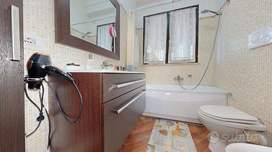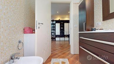 Situato al primo piano di un solido edificio della fine degli anni '70, questo appartamento rappresenta una rara opportunità: coniugare la generosità degli spazi dell'epoca con una visione abitativa moderna, grazie a una ristrutturazione integrale curata nel 2010 che ha ridefinito lo standard di comfort. L'ingresso non è un semplice disimpegno, ma si svela come un ampio ambiente d'accoglienza, uno spazio versatile dove un divano bianco invita subito alla sosta e alla conversazione. Da qui, la vista e lo spazio si estendono fluidamente verso la grande cucina abitabile, vero cuore pulsante della casa. Questo ambiente, ideale per la convivialità quotidiana, è reso unico dalla presenza di un suggestivo camino a legna e dall'affaccio diretto su un'ampia veranda coperta, caratterizzata da finiture in legno e steccato, una vera e propria estensione del living perfetta per momenti di relax all'aperto. La zona notte, nettamente separata per garantire la massima privacy, si distingue per le dimensioni generose delle due camere da letto matrimoniali, tipiche dell'architettura del periodo. Entrambe godono dell'accesso diretto a un balcone, perfetto per un risveglio all'aria aperta. L'interno della proprietà è completato da un bagno dal taglio funzionale e moderno. La qualità dell'abitare è garantita da precise scelte tecniche: l'intera abitazione è servita da infissi in legno con vetrocamera, che assicurano eccellenti prestazioni termiche e acustiche, e sono dotate di zanzariere su ogni apertura. Il comfort climatico è ottimale in ogni stagione grazie ai sistemi di climatizzazione inverter presenti sia nelle camere da letto che nel soggiorno. L'elemento di assoluta esclusività, che eleva drasticamente la comodità e la privacy, è rappresentato dal garage di proprietà esclusiva: al suo interno è posizionato l'ASCENSORE PRIVATO che conduce, in totale riservatezza, direttamente all'interno dell'appartamento, annullando ogni barriera architettonica.PO567