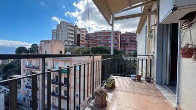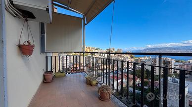 La casa è situata al quinto e ultimo piano di edificio provvisto di ascensore. Il soggiorno è di forma rettangolare ed è munito di finestra e portafinestra su balcone da cui si gode di una vista sullo stretto e sul circondario dell'Annunziata. La cucina è servita da un balcone di suo uso esclusivo anche questo molto panoramico. Le camere da letto sono tre e sono molto comode e spaziose, oltre che molto luminose. I bagni sono due, entrambi con finestra, uno con vasca e l'altro di servizio. Completa la proprietà un ripostiglio interno all'abitazione.