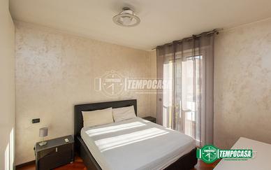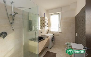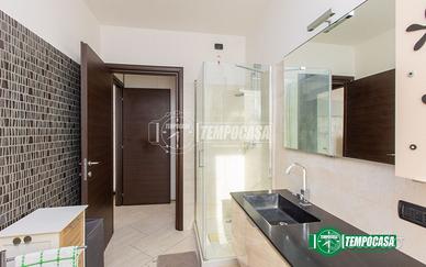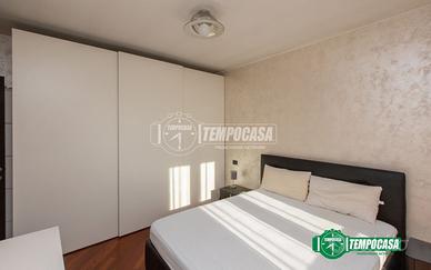 La zona notte comprende una camera matrimoniale di generose dimensioni e un bagno finestrato completo di box doccia.