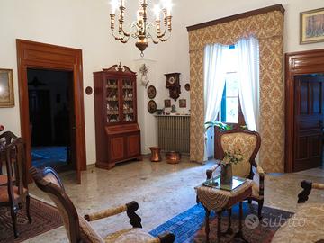 Antica casa a circa 100 m dalla piazza principale. 320 mq su due piani. Piano rialzato: corpo principale con volte a stella, 4 vani aggiunti nei primi anni '60; piano superiore: 4 vani aggiunti negli anni '70. Ampliamenti regolarmente sanati. Antico giardino mediterraneo di circa 800 mq, cantina con volta a botte di 65 mq, dependance al grezzo di circa 60 mq, garage per 2 auto (27 mq). Termoautonomo a gas. Ingresso principale più ingresso dal giardino in altra strada.