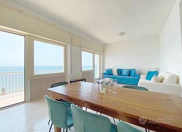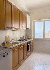 Soluzione unica a picco sul mare con discesa privata in spiaggia appartamento di 110 mq salone doppio cucina abitabile due camere matrimoniali due bagni grande balcone fronte mare cabina in spiaggia finemente arredato climatizzatori lavastoviglie tv maxi sei posti letto no affitti brevi e brevissimi ma solo per più mesi in blocco