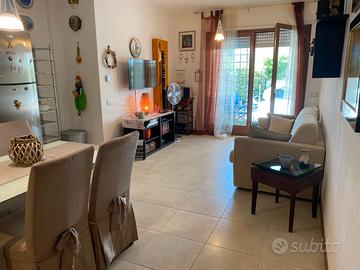 Anzio Santa Teresa appartamento di 50mq finemente arredato 1 camera matrimoniale, bagno, ampio soggiorno con angolo cottura, disimpegno patio,giardino di 80 mq, posto auto, riscaldamento autonomo serrande elettrica, tenda elettrica, ecc. affitto 650 euro mensili compreso condominio e consorzio, VENDITA 149000 mila euro (affitto contratto transitorio a non residenti). NO AGENZIA