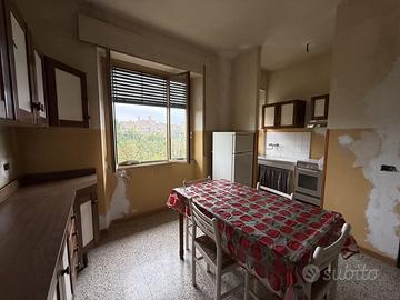 In prossimità del centro storico di Città della Pieve, in tranquilla zona residenziale, proponiamo in vendita appartamento di circa 110 mq situato in una palazzina di sole 4 unità immobiliari. ?L'immobile, con splendida vista sul centro storico, offre un contesto riservato e panoramico a pochi passi dai principali servizi e dalle bellezze del borgo. Composizione? L'appartamento, di 110 mq, si sviluppa a piano primo ed è composto da ingresso, soggiorno con balcone, zona pranzo, cucina con stufa a legna e dispensa, disimpegno e tre ampie camere matrimoniale di cui una con balcone e bagno. Completano la proprietà locale ripostiglio con finestra al piano sottostrada e giardino posto sul retro della palazzina. ?Stato e finiture ?L'appartamento necessita di lavori di ristrutturazione interna, offrendo la possibilità di personalizzare gli ambienti secondo le proprie esigenze. ?Al momento non è presente il riscaldamento. Spese condominiali: 400,00 euro all'anno circa