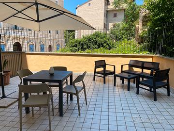 Ampio terrazzo privato con scorcio sulla cattedrale , porto e teatro delle muse sono a due passi, così come ristoranti e negozi.