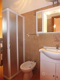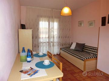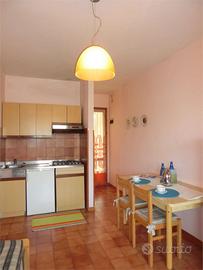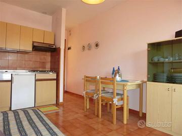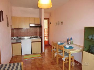 Proponiamo in vendita un ampio appartamento bilocale arredato di 45 mq., al primo (ultimo) piano che si compone di terrazzo con vista piscina, soggiorno con angolo cottura e divano letto, una camera matrimoniale, bagno finestrato con box doccia, aria condizionata/pompa di calore e posto auto scoperto ad uso esclusivo.