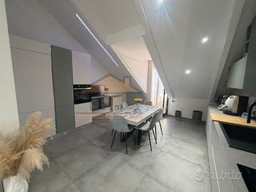 Proponiamo in vendita sito in Giugliano in Campania, in Via Romagnosi, nelle immediate vicinanze della "Metropolitana", in contesto tranquillo e ben curato, all'interno di un parco residenziale signorile, elegante appartamento mansardato completamente ristrutturato, situato al terzo piano servito da ascensore. L'immobile, di circa 90 mq, si distingue per una distribuzione moderna e funzionale degli spazi. L'ingresso si apre su un ampio e luminoso soggiorno con cucina a vista, ambiente accogliente e ideale per la vita quotidiana e per momenti di convivialità. La zona notte è composta da una spaziosa camera da letto, una cameretta e un bagno rifinito con materiali di qualità. La soluzione gode di una doppia esposizione che garantisce ottima luminosità durante tutto l'arco della giornata, valorizzata dalla presenza di piccoli balconi. Completano la proprietà: -Box auto di circa 40 mq; -Posto auto all'interno del parco. L'appartamento si presenta in ottime condizioni, pronto per essere abitato, ed è ideale per famiglie o per chi cerca una soluzione confortevole in una zona ben collegata. La vicinanza alla metropolitana rappresenta un valore aggiunto per chi necessita di spostamenti rapidi. Il prezzo di vendita richiesto è di € 180.000,00 leggermente trattabile.
