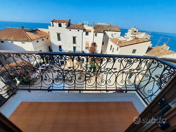 Appartamento super panoramico, doppia esposizione, centro di Sperlonga, palazzo signorile, 4 piano senza ascensore, due camere da letto (un letto matrimoniale e un letto a una piazza e mezzo) , due balconi, bagno finestrato, cucina attrezzata, lavatrice, piano induzione, tv, areato, nuovo appena ristrutturato, minimo 5 notti/una settimana, affitto mensile.
