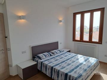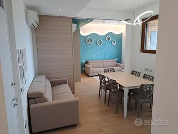 Civitanova Marche quartiere San Gabriele - Villa Pini - lungomare nord, si affitta da GENNAIO a MAGGIO appartamento in zona ben servita a 150 metri dal mare ed a 10 minuti dalla stazione e dal centro. Posto al 3° piano con ascensore, con ottima esposizione a sud e vista mare laterale, superficie lorda 80 mq circa, molto luminoso, recentemente ristrutturato con materiali e finiture di qualità. Composto da soggiorno-cucina, camera matrimoniale, cameretta, bagno, ripostiglio a parete, balcone in nicchia. Dotato di: aria condizionata, impianto allarme, riscaldamento autonomo, TV in ogni stanza, lavastoviglie, forno, microonde, lavatrice, finestre nuove con zanzariere e tapparelle motorizzate. Parcheggio condominiale in corte privata ed eventuale possibilità di utilizzo di cantina per deposito bici ecc... Affitto preferibile a massimo 2 persone; tassativo no fumatori e no animali. Canone 700 euro mensili, escluse spese condominiali di circa 30 euro mensili e consumi gas, acqua ed elettricità a conguaglio.