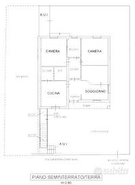 - Il primo appartamento è posto al piano seminterrato con accesso da corte esclusiva, composto da ingresso, soggiorno, cucina/pranzo, due disimpegni, ripostiglio, due camere e bagno.