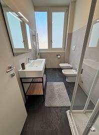 o Bagno moderno: finiture di qualità, doccia ampia e tutti i comfort per un'esperienza rilassante.